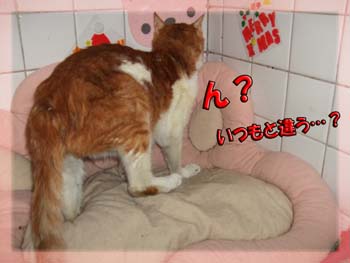 いつもマイペースなタンタンも自分のお部屋に何かあるのが気になったようです。目は大丈夫のようです。(笑)