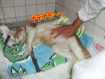 スタッフにたっぷりナデナデしてもらって、