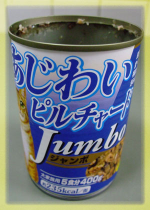 ジャンボ缶はミリキ的ですよね♪…でも、みぃみぃのお家では、もう少しお安い4缶パック(\200-弱)が定番なので、ジャンボ缶でも割高に思えてしまうのですにゃ(~-~)*ジャンボ缶400g約\140-として、約180gx4で\200-で考えるとネ(^.^)b