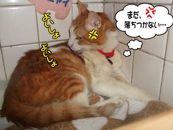 毛繕いで、気分を落ちつかせてます。