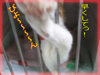 お散歩に出す時は危ないのでタンタンはゲージで待機。