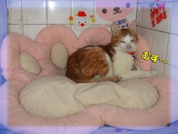 通りすがりにシェルターを覗くと爆睡きのこちゃん。