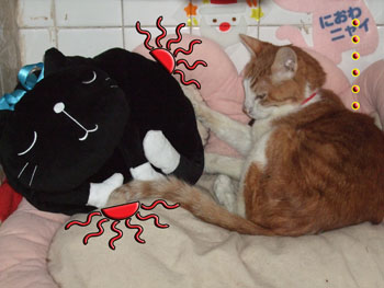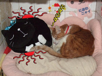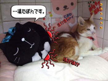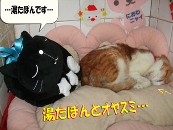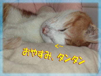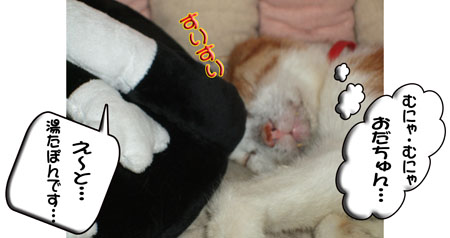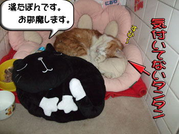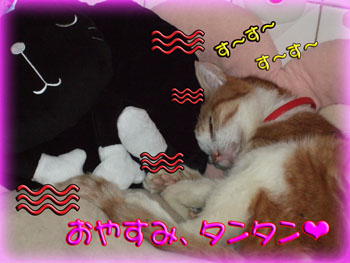 タンタン、湯たぽんにくっ付いて眠りに入りました。