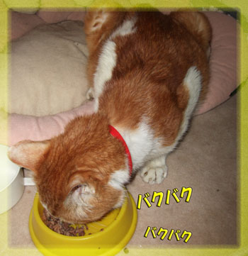 夕方、ゴハンを食べるタンタン。