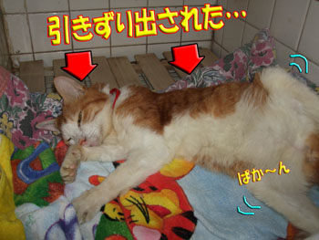 夕方、治療の為引っ張りだそうとしたら…、