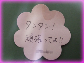 タンタンの裏口に嬉しいメッセージがありました。