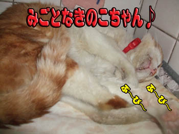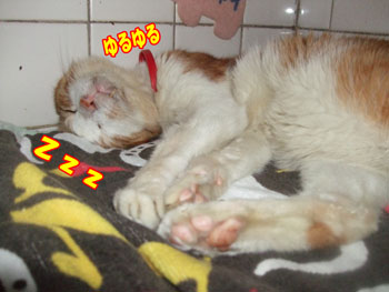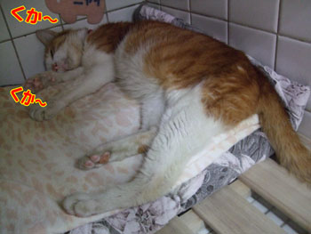 3匹のお見合い中、♀のクロはお昼寝中。