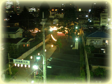 今、公園で盆踊りをやっています。