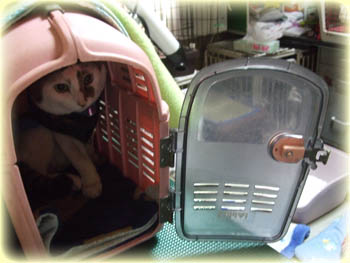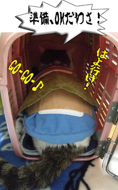 時間になるとキャリーに入って待ってる「じ」