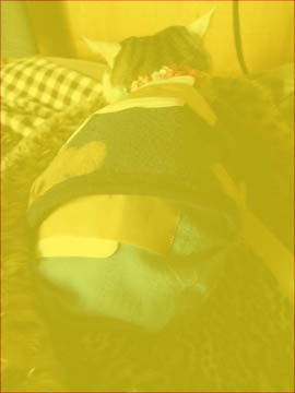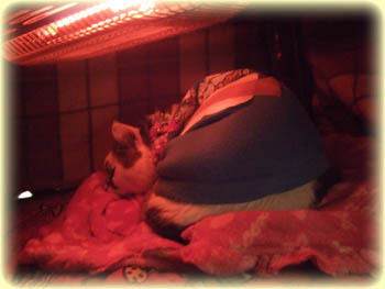 治療を受け、いつもよりもっと穏やかなどんこ