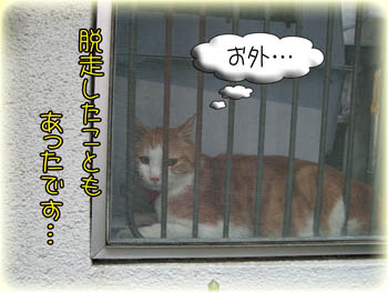 ネコ部屋のお掃除の隙を付きどんこが脱走!