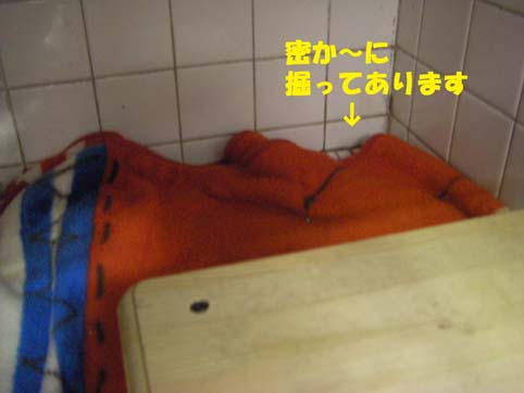 片隅でちっちゃくなって寝ているタンタンを見て、