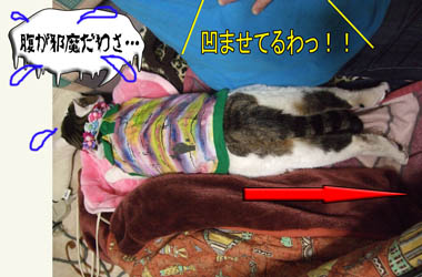 おコタツから飛び出して伸びてる!