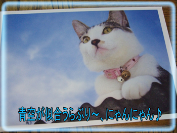 青空をバックにした「にゃんにゃん」のポストカード♪