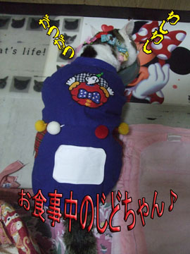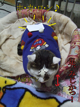 お洋服着てホカロン貼って喰ってる… ( ̄∇ ̄;) ハッハッハッ