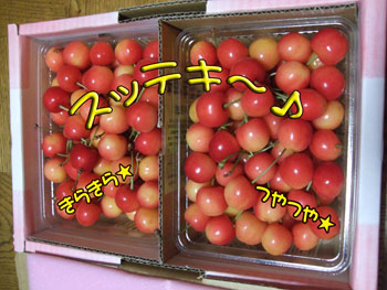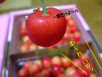 さくらんぼちゃんの囁きに負けて一個、食べちゃいました。