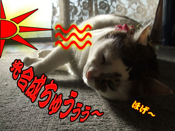 ネコ部屋は北側なので久しぶりの光合成を満喫中~ホゲ~