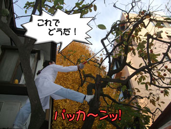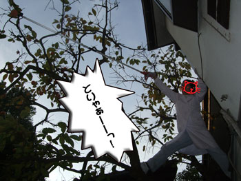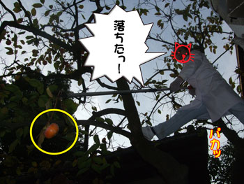 柿が頭に当たるアクシデントは回避されましたが・・・クックックッ