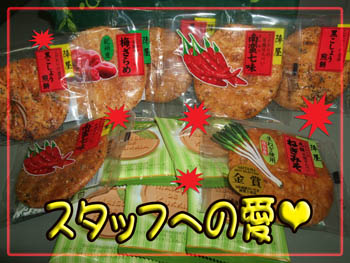 スタッフはただ”煎餅”を食べながら応援するだけですが、