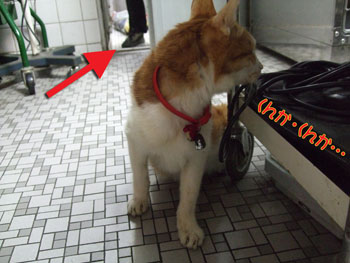 診察室へのパトロール兼お散歩をしていました。
